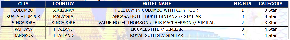 4 IN 1 SIRILANKA + MALAYSIA + SINGAPORE + THAILAND
