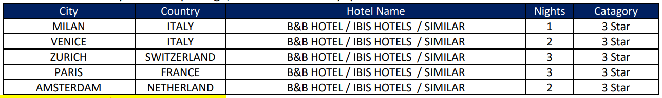 § Hotels will not be in main city centres
