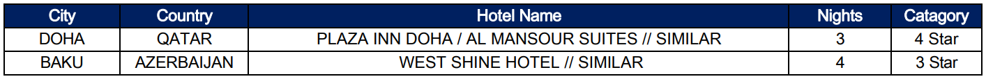  Islamabad – Doha – Baku – Doha – Islamabad.
