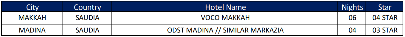  All roomsin Makkah & Madina will be consisting 4 Single beds maximum & no King Bed.
