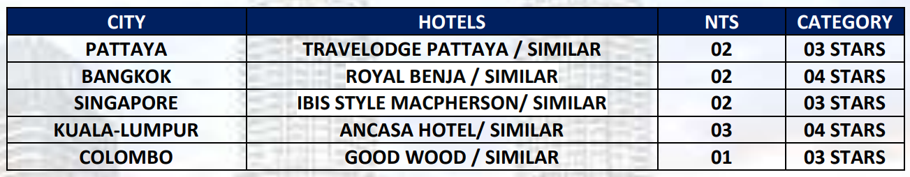  LAHORE – COLOMBO – BANGKOK // KUALA LUMPUR – COLOMBO – LAHORE (SRILANKAN AIRLINE)